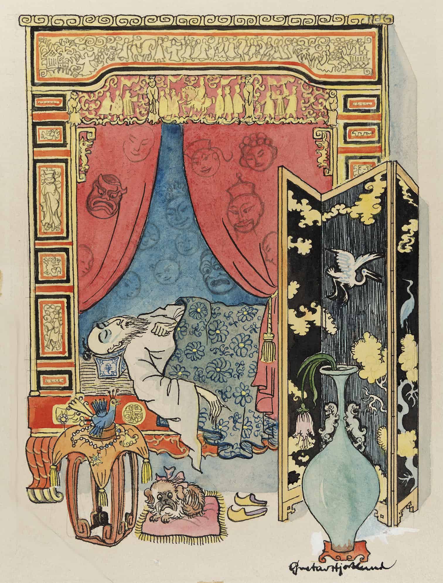 The mechanical bird had its place on a silk cushion close to the emperor’s bed; all the presents it had been given, gold and precious stones, lay round it, and its title had risen to ‘high-imperial-bedside-table-singer, number one rank on the left-hand side’, because the emperor regarded that side as being the finer, the one on which the heart sits – and the heart also sits on the left in an emperor. And the music master wrote twenty-five volumes about the mechanical bird, it was so learned and long and with the most difficult Chinese words in them, so everyone said that they had read and understood them, for otherwise they would have been stupid and been punched in the stomach.