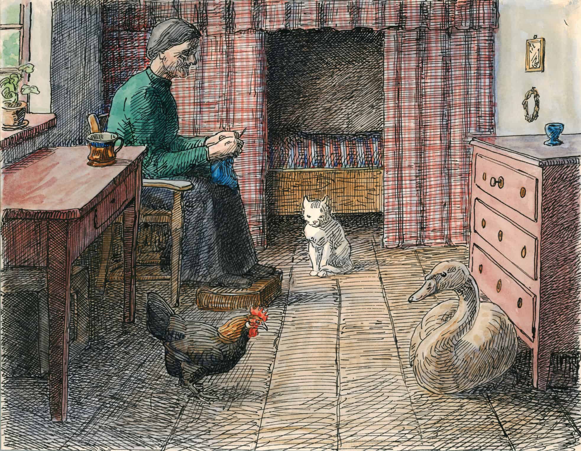 ‘Yes, a great pleasure indeed!’ the hen said, ‘You must have taken leave of your senses! Ask the cat, he’s the cleverest creature I know, if he likes to float on the water, or dive down! Not to mention myself. – Ask our mistress, the old woman, there’s no one cleverer than her anywhere in the world! Do you think she feels like floating and having water above her head?’