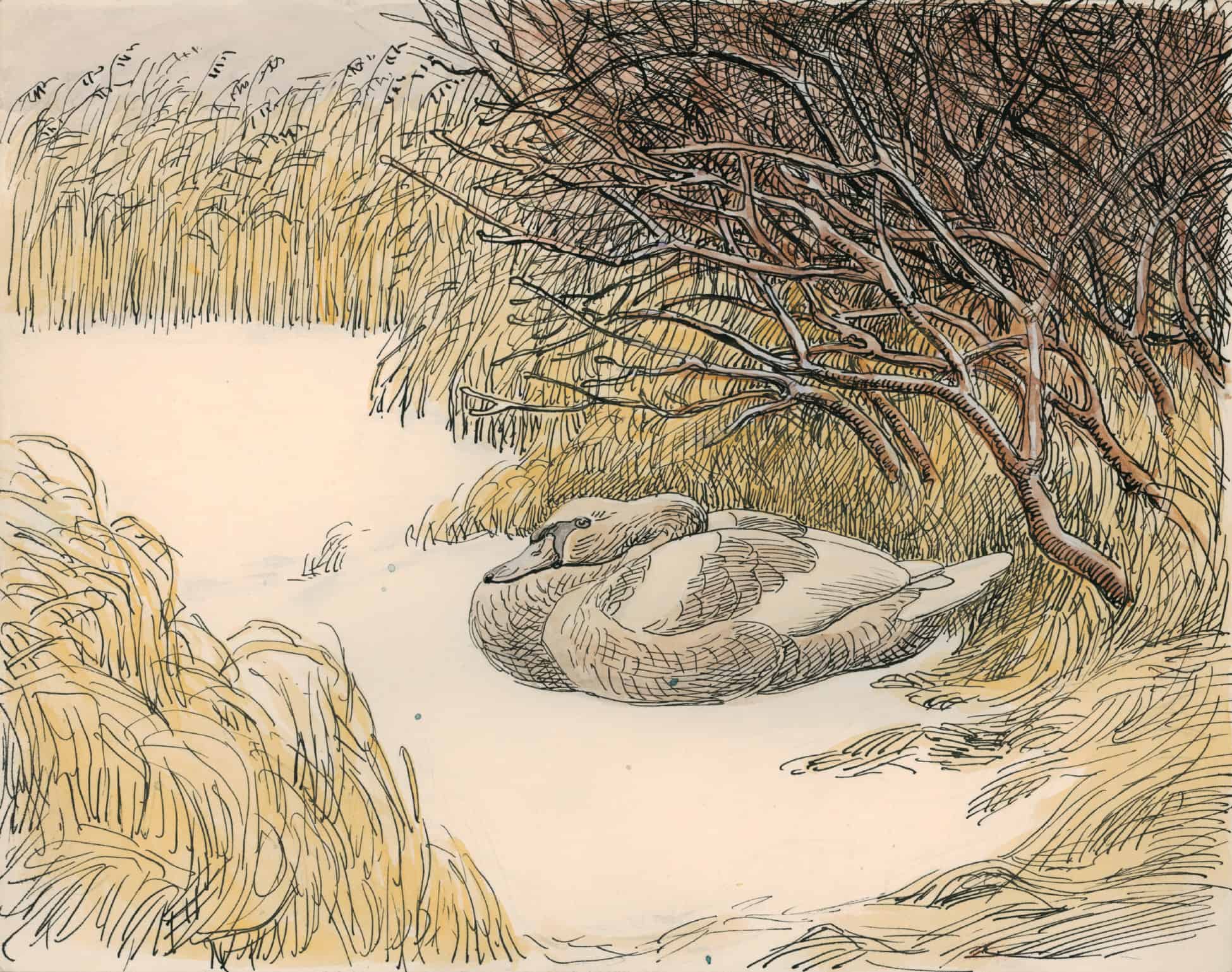 ‘You’re downright ugly!’ the wild ducks said, ‘but that’s all the same to us as long as you don’t marry into our family!’ – The poor bird! he certainly had no thoughts of marrying, he was content just to be allowed to lie in the reeds and drink a little marsh water.